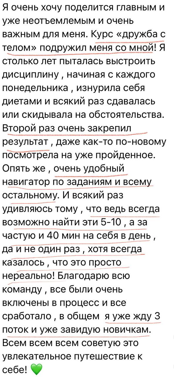⦿ Выстроишь диалог с телом и научишься его слышать