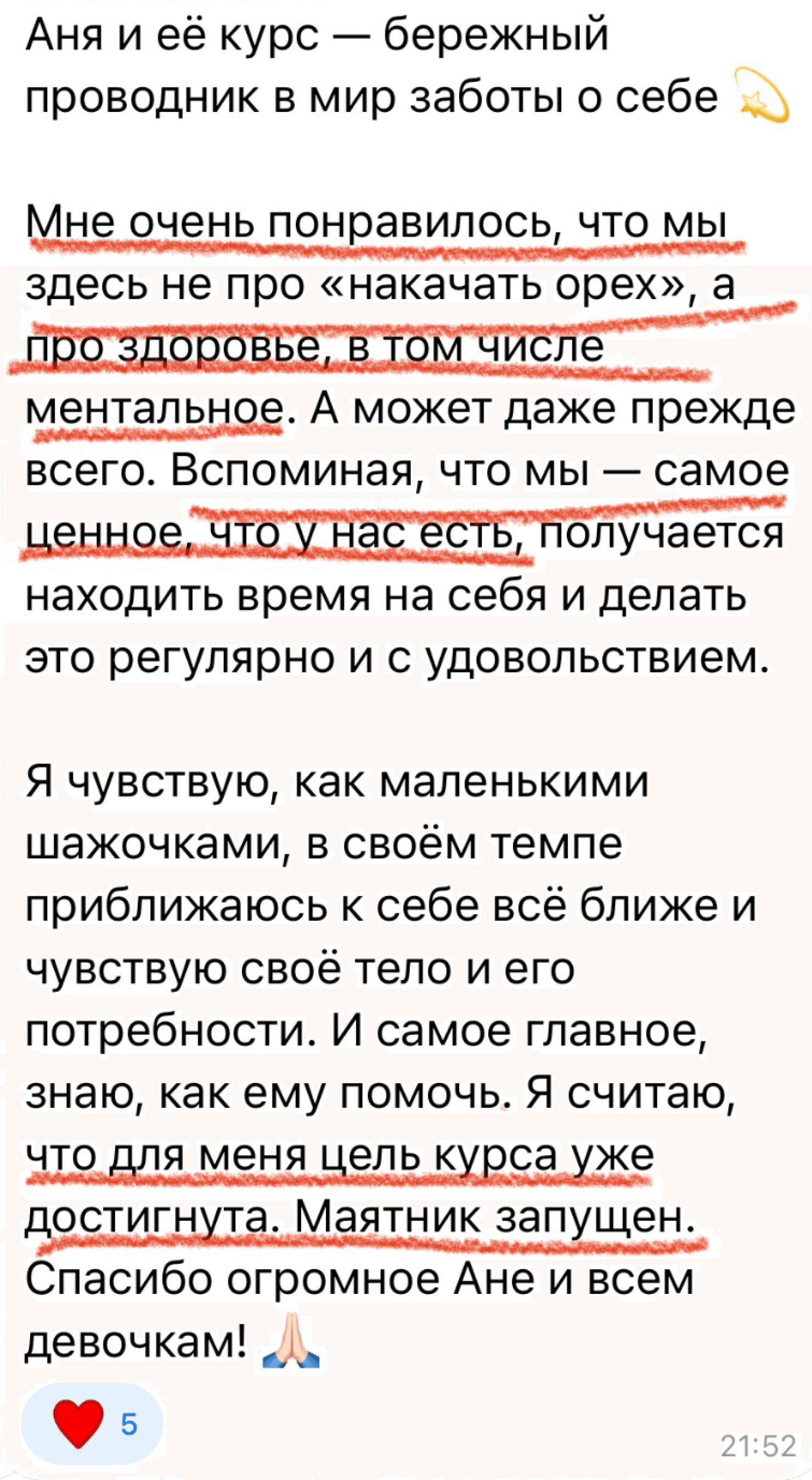 Привет, я Анна Назарова. Профессиональная актриса, блогер, модель, жена и мама двоих детей. Я не фитнес‑тренер, Я девушка, которая прошла длинный путь, чтобы подружиться со своим телом, и накопила ценный опыт, которым хочу поделиться с тобой.